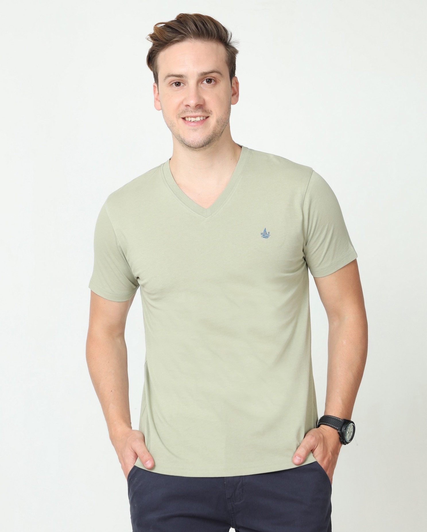 T shirt coton bio-wash col V 4 XL CELADON