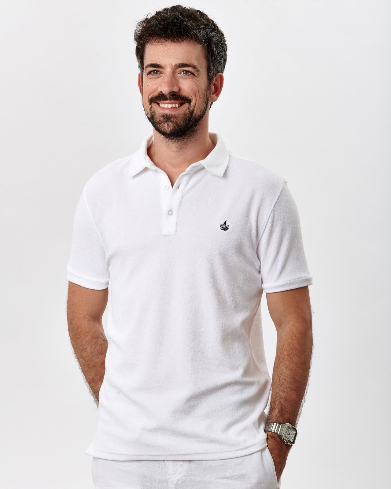 Polo velours éponge uni L BLANC