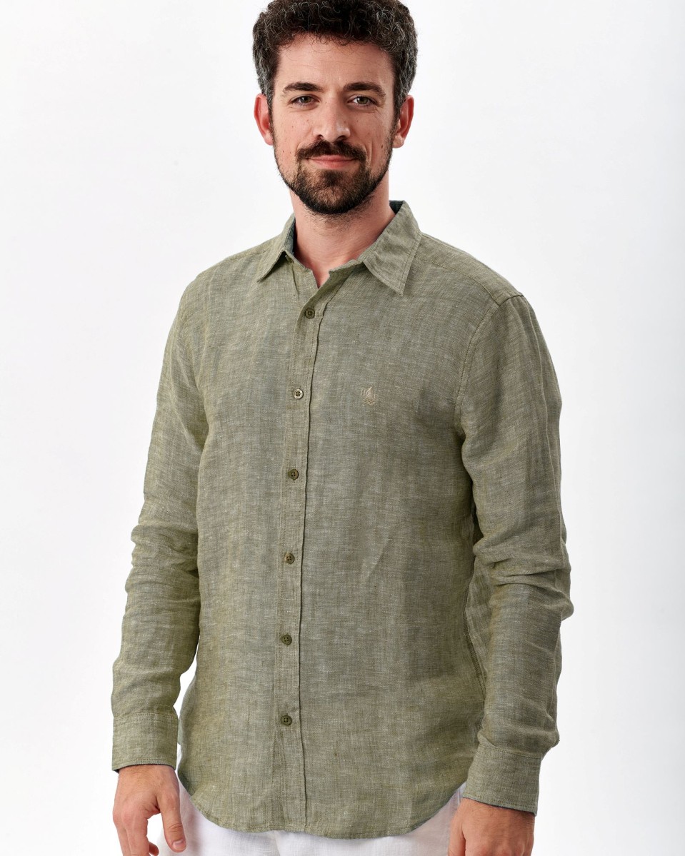 Chemise en lin manches longues chinée M OLIVE