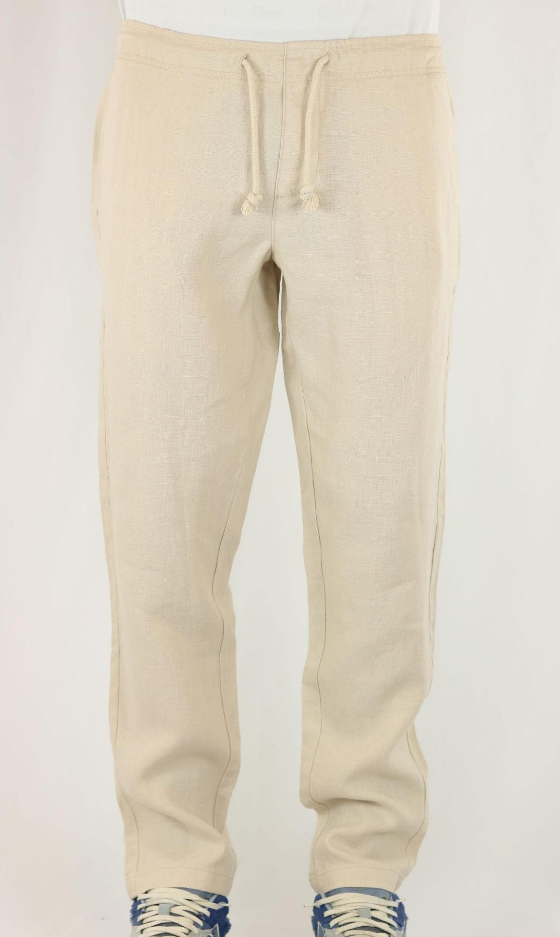 Pantalon lin élastiqué avec cordon de resserrage.